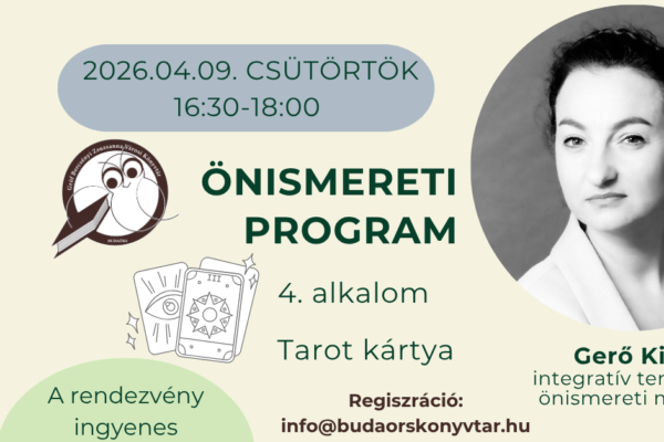 Fedezze fel önmagát a Tarot segítségével! A Budaörsi Könyvtár szeretettel meghívja Önt legújabb önismereti programunkra,…