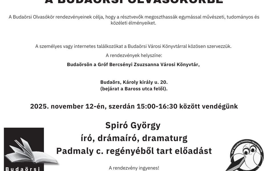 Tisztelettel meghívjuk Önt 2025. április 16-án, szerdán 18:00 órakor a Budaörsi Könyvtárba, ahol egy különleges irodalmi esttel várjuk! A program során klasszikus és kortárs magyar…