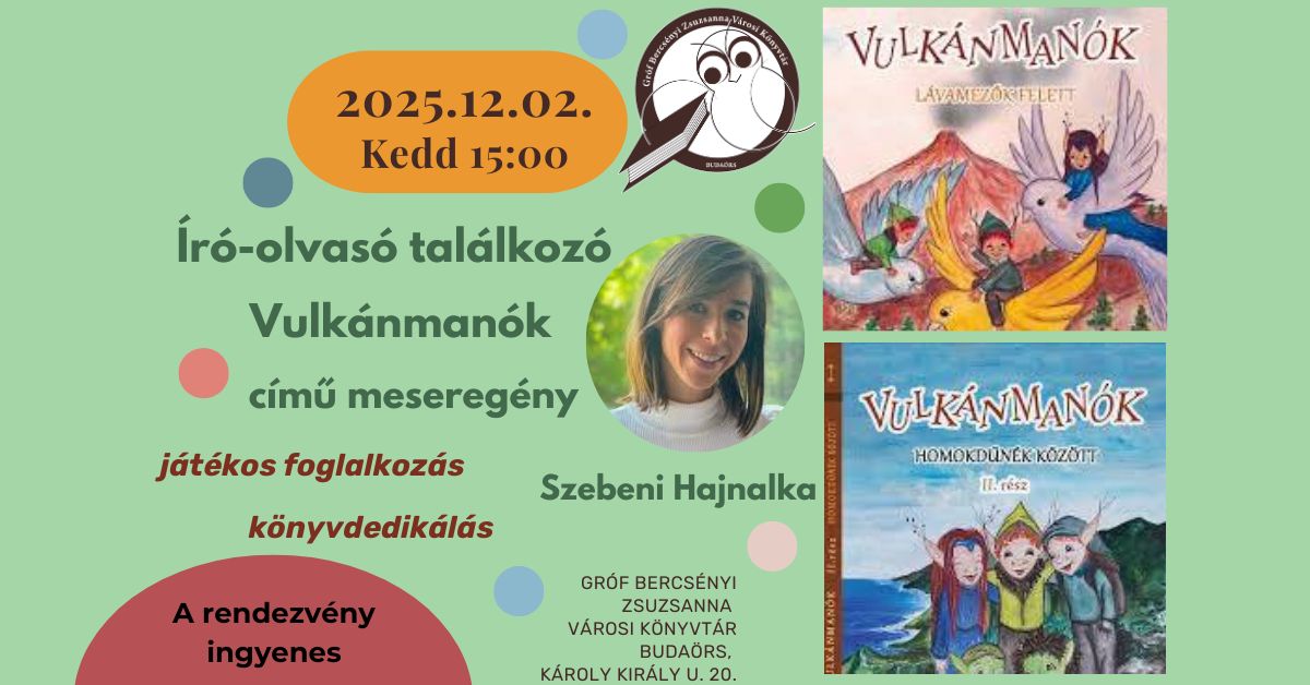 Szeretettel várunk minden gyermeket és szülőt Szebeni Hajnalka írónő „Vulkánmanók” című meseregényének bemutatójára.